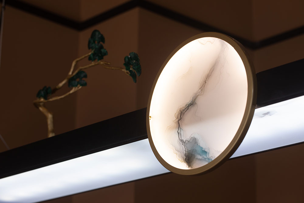 The transition area of the second floor corridor, take the advantage of the oriental arch structure echoes the serene landscape image; by way of different materials to construct functional areas. Exploit the classical elements and the modern craftsmanship to bring about various stunning effects.